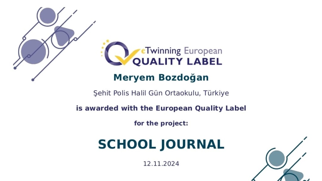 E-Twinning Avrupa Kalite Ödülü okulumuz İngilizce Öğretmeni Meryem BOZDOĞAN'a verildi.